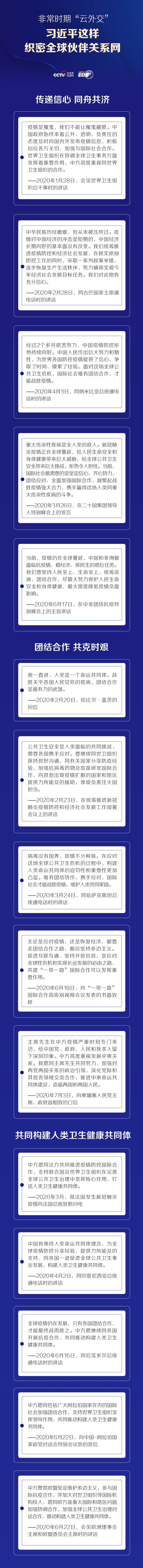 疫情发生以来,习近平主席以电话、书信、视频为主渠道,开启“云外交”模式。