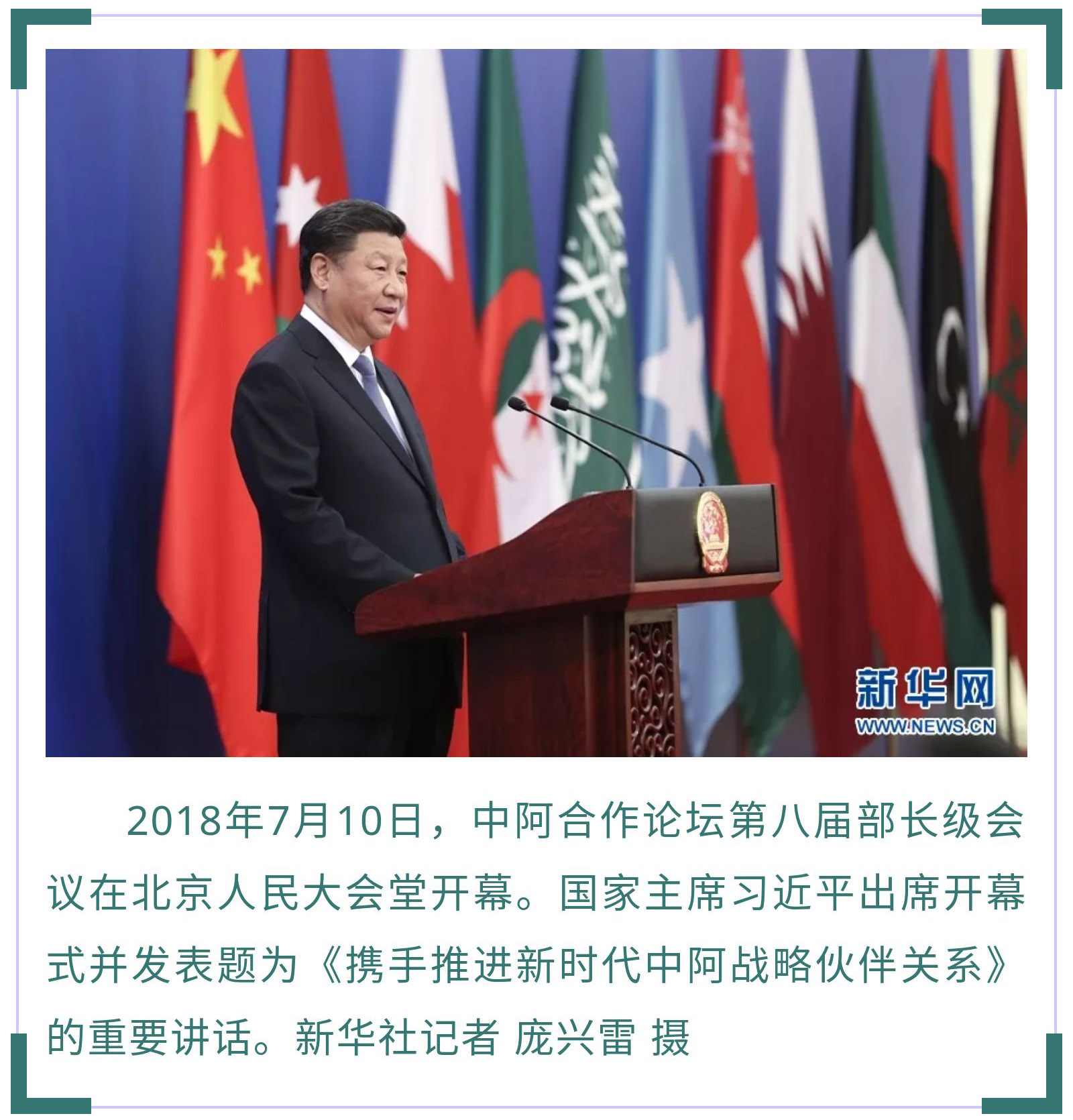 2018年7月10日,习近平在中阿合作论坛第八届部长级会议开幕式上提出,“各方要始终心系合作,多做共赢的加法和乘法,把一股股发展努力汇聚起来,优势互补,共享繁荣。”