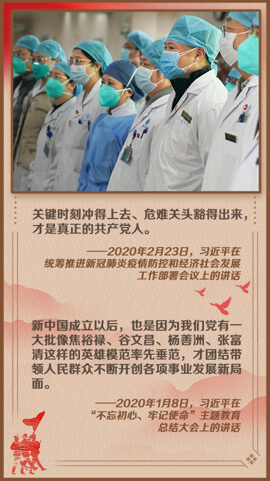 2020年3月14日,在广东省中山大学附属一院援助武汉医疗队驻地,24名医疗队队员面对鲜艳的党旗,高举右手庄严宣誓,成为光荣的中国共产党预备党员。