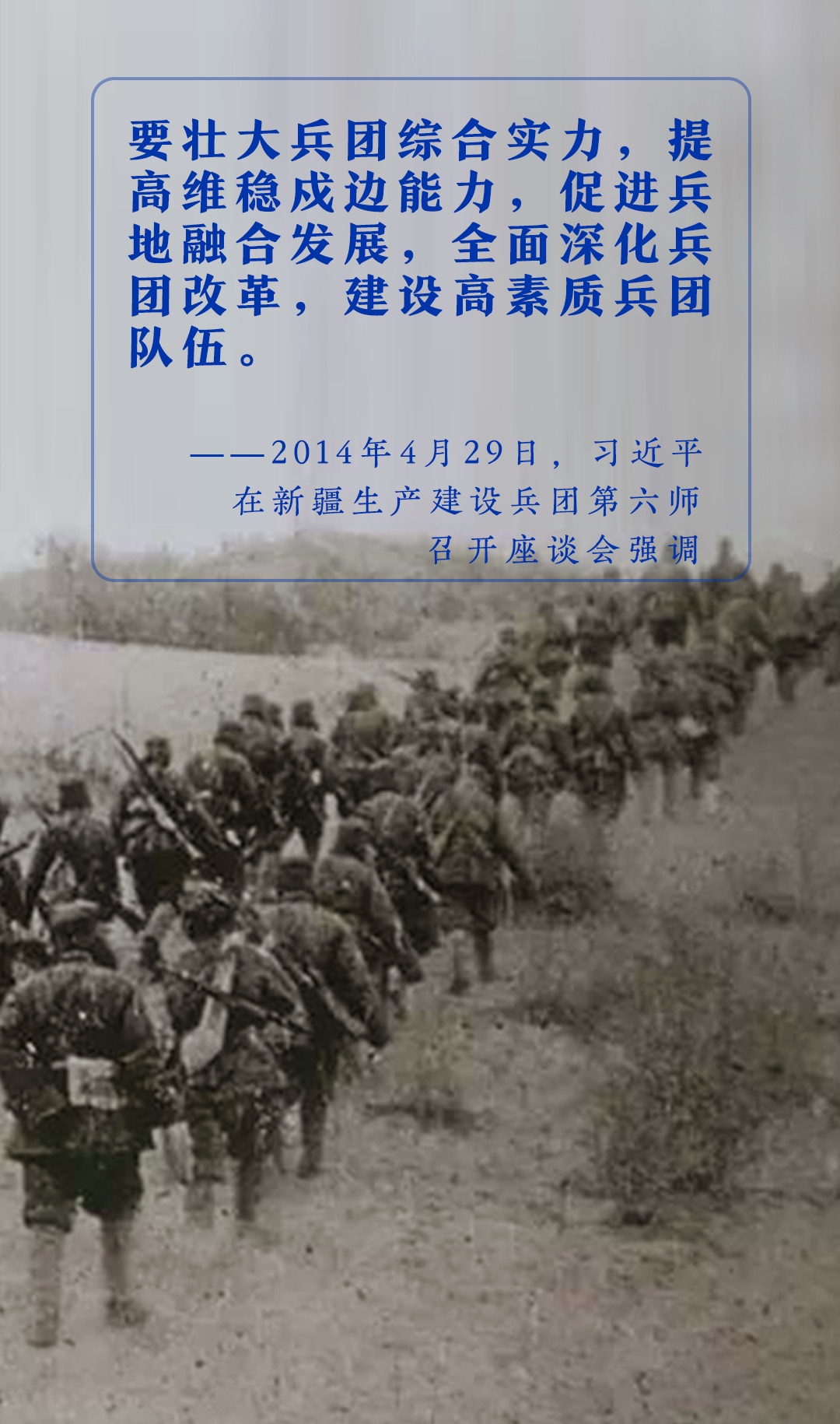 9月25日至26日,习近平总书记在第三次中央新疆工作座谈会上强调,要践行胡杨精神和兵团精神,激励各级干部在新时代扎根边疆、奉献边疆。