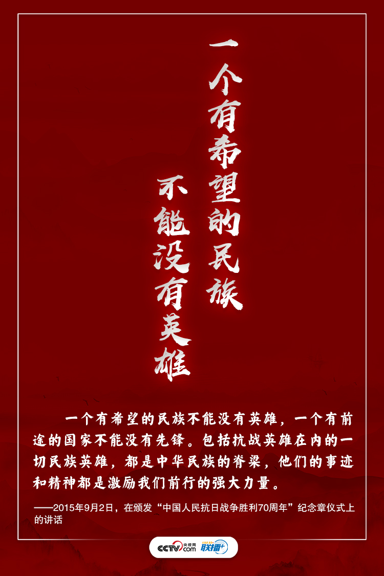 “天地英雄气,千秋尚凛然。”党的十八大以来,习近平总书记曾在多个场合表达对英雄的崇敬之情,号召全社会铭记英雄、崇尚英雄、捍卫英雄、学习英雄、关爱英雄,声声话语催人奋进。央视网《联播+》特梳理,以飨读者。