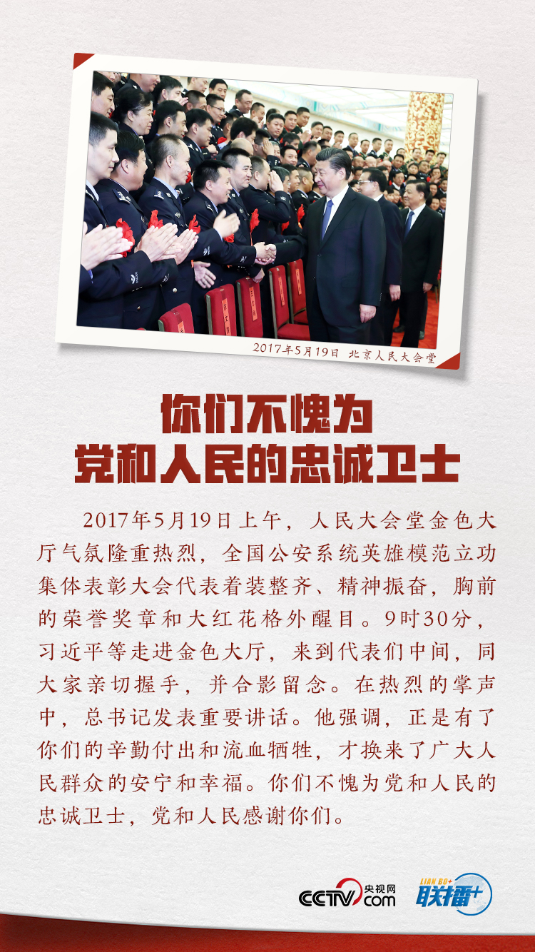 一直以来,习近平总书记对政法工作、对人民警察队伍高度重视。党的十八大以来,总书记多次会见全国公安系统的英模代表,多次到基层看望慰问人民警察,在不同场合多次表达对这支队伍的关心关爱。央视网《联播+》栏目特选取六幅珍贵画面,结合总书记相关重要讲话,为您展示人民领袖对人民警察的深情