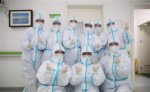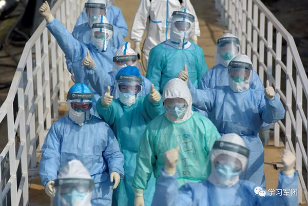 火神山医院,即将打响一场场更为关键的战斗。医疗队队员满怀信心竖起大拇指!(图片来源:军事时政新闻微信公众号)