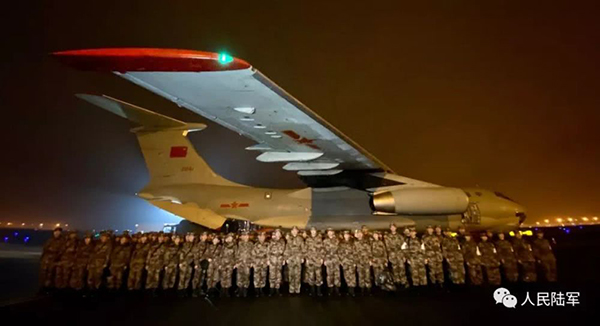除夕夜!出征夜!1月24日晚,经中央军委批准,解放军派出3支医疗队共450人分别从上海、重庆、西安三地乘坐军机出发,于当晚23时44分全部抵达武汉机场。(图片来源:人民陆军微信公众号)