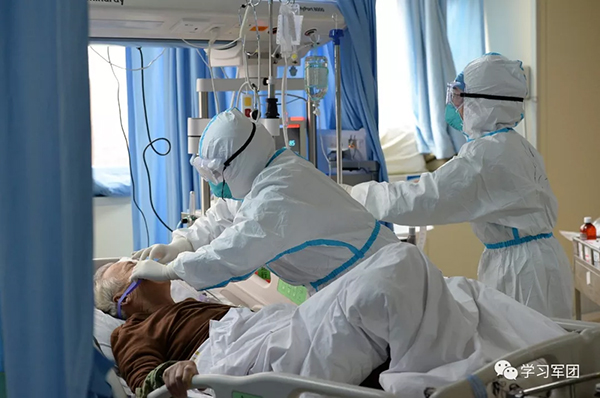 接诊!进驻重症监护室:1月25日,解放军3支医疗队分别奔赴金银潭医院、汉口医院、武昌医院等3家收治任务最重的定点医院开展救治工作。1月26日,解放军医疗队进驻重症监护室,对危重患者进行规范救护。(图片来源:空军军医大学微信公众号)