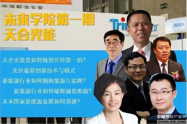 2015年4月25—26日,天合光能将作为未来学院2015年第一个企业案例,在常州天合光能总部正式拉开帷幕。届时将有由天合光能董事长高纪凡先生领衔的导师团队与未来学院的学员对话太阳能行业未来。