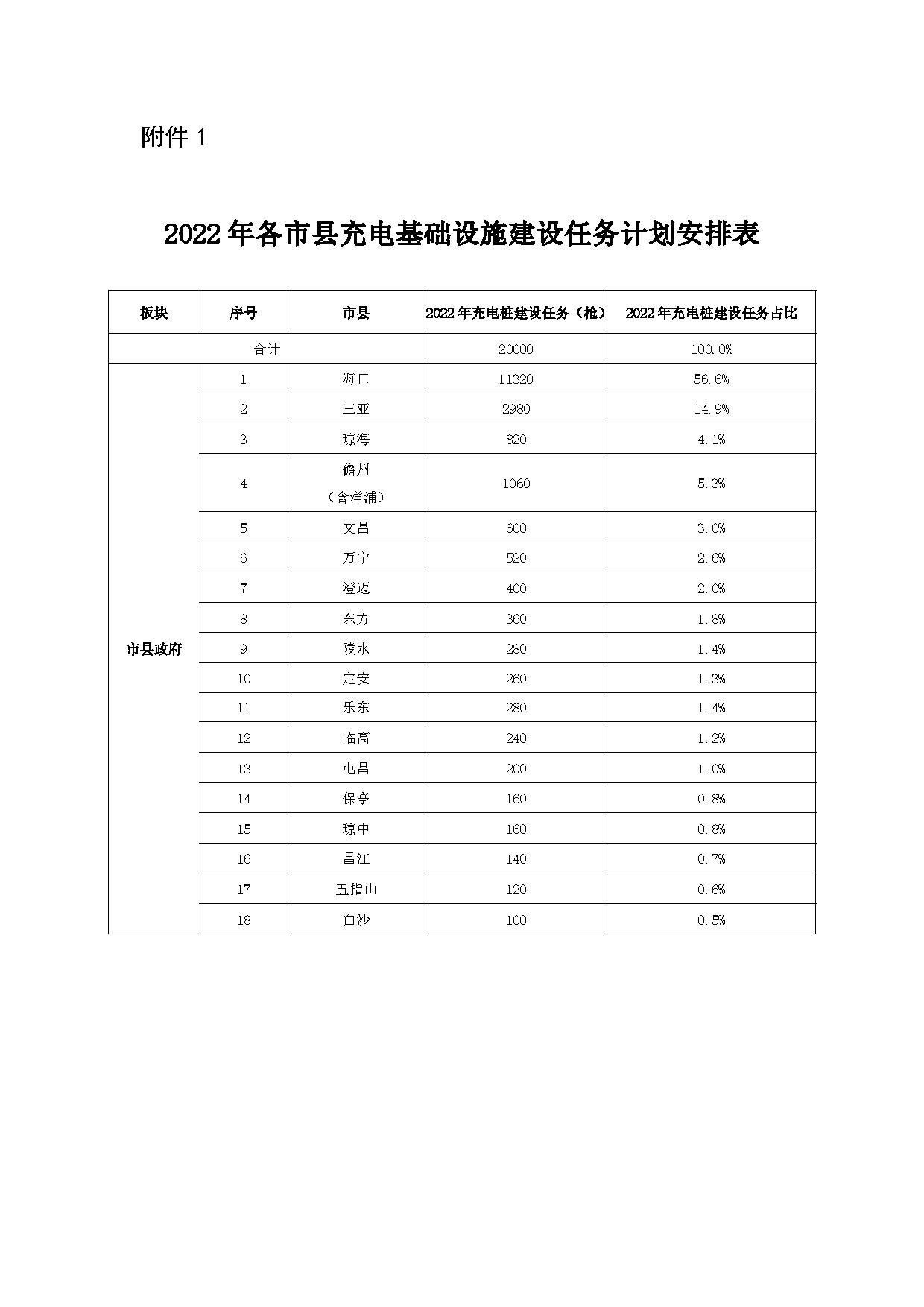 (一)各市县充电桩建设任务计划,是根据我省2022年新能源汽车5万辆推广计划,并按照省政府工作报告中规定的车桩比2.5:1进行安排。具体计划安排详见附件1。
