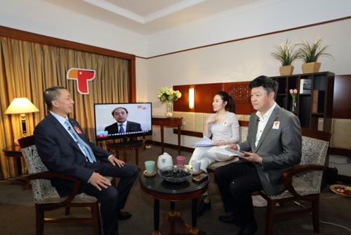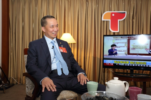 (人大代表周奕丰在北京接受“触电会客厅”采访)