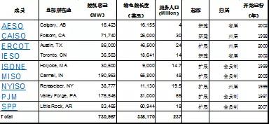 ▲北美洲九个电力市场的简单统计