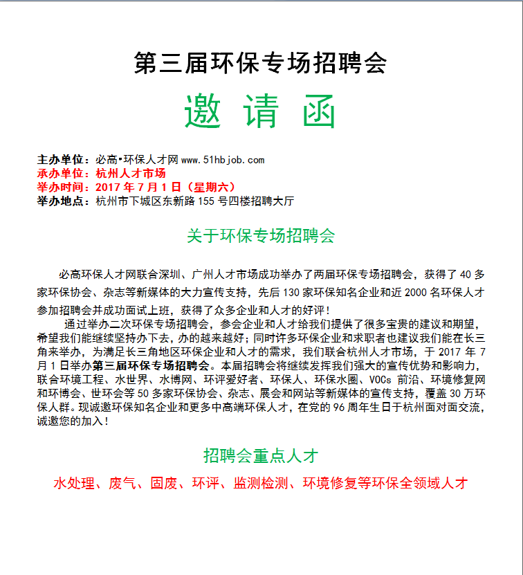 招聘会组委会官方网站:必高环保人才网www.51hbjob.com