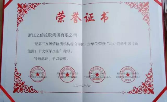 大会采用新媒体全网舆情监测技术,结合专家意见,推举了一批在“创新与经济融合发展”过程中取得丰硕成果的优秀代表,其中浙江之信控股集团及旗下遨优动力系统有限公司总经理陈光森博士分获2017创新中国(新能源)十大领军企业奖和2017创新中国年度领军人物奖。
