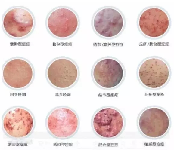 痤疮是一种毛囊皮脂腺的急性或慢性炎症。有黑头、丘疹、脓疱、结节、脓肿、囊肿和疤痕等多种损害,好发于面部和胸背部。