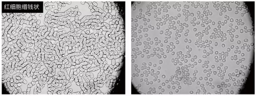 使用石墨烯远红外能量房前后红细胞缗钱状态的对比