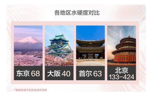大家平时都用自来水进行洁面沐浴。在我国自来水俗称硬水,因为我国自来水硬度普遍偏高,含有大量的钙镁等硬度离子,我国北方的水硬度平均数值300-500ppm。而软水是低于60ppm的水,含有较少的钙镁等硬度离子,日韩国家的水硬度数值为40-60ppm,接近于软水。
