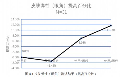 通过以上测试验证了A.O.史密斯美容软水良好的保湿锁水效果,以及皮肤屏障的修复能力。作为美容产品,通过以下测试数据可以看出在使用A.O.史密斯美容软水4周后,面部皮肤亮白程度及面部皮肤弹性(眼角)也都有明显的改善。