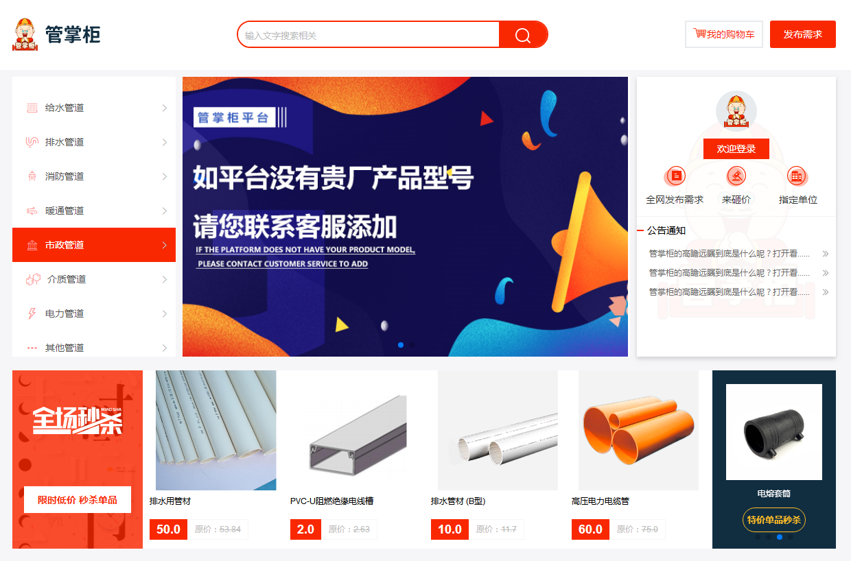 管掌柜平台聚集物联网、云计算、AI智能及互联网营销等行业精英,在平台功能创新、服务创新、供应链整合、数据服务、营销推广等方面全面布局,旨在为平台入驻商家提供多全流程一站式服务,从多维度、多层次帮助传统管道企业入驻平台,并解决传统经营模式下普遍存在的产销信息不对称、需求分散不聚量、产品流转效率低、仓储人力成本高、渠道拓展耗精力、资金周转效率低等诸多问题。