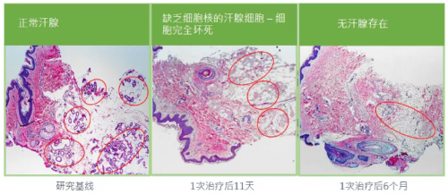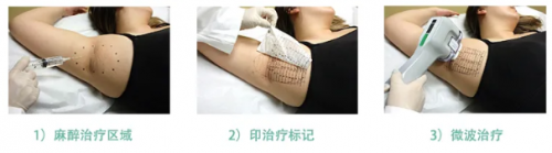 微波热能精准聚焦在汗腺分布的区域,并保持治疗温度在60~70℃,有效破坏汗腺,破坏的大小汗腺不会再生,达到持久效果;而冷却系统在治疗中能维持在15℃ ,保护表皮及真皮层上方不受热能烫伤。治疗1个小时左右,轻松止汗除腋臭。
