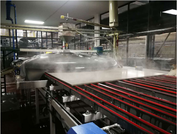 此外,该钟罩淋釉器还通过圆弧形断面使釉浆均匀地对砖各点施加压力,施釉重量完全相等,极大地提高了釉面质量。通过独特的流体模型设计,精确的动态压力控制,使稳压的釉浆在钟罩下缘口形成致密均匀的瀑布,保证了淋釉面厚度精确一致。尤其是钟罩表面高精度、高均匀的处理,使釉面非常平整光滑,大幅度提升釉面印花工艺的质量和水平。