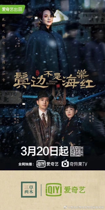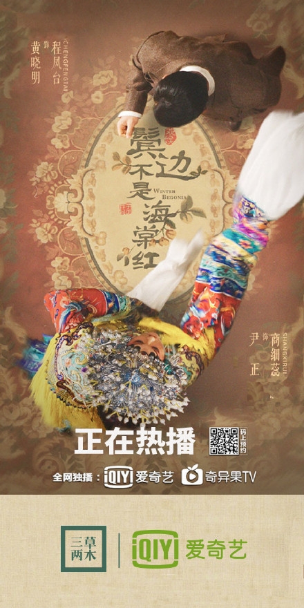 三草两木创立以来,极少活跃在银幕之上。《鬓边不是海棠红》是三草两木继《都挺好》、《知否知否应是绿肥红瘦》(下面简称“知否”)之后,合作的第三部爆款剧。与《都挺好》的生活类剧情、《知否》的宅斗类剧情不同,《鬓边不是海棠红》将故事设定在上世纪三十年代的北平,讲述一代天才京剧名伶商细蕊与爱国热血商人程凤台因戏结缘,相知奋斗的传奇故事。开播以来,观众对尹正诠释的京剧热议不断,表明中国国粹还是非常受大家欢迎的。