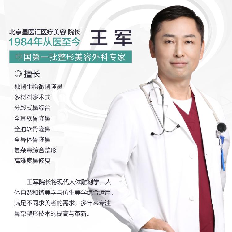 北京星医汇医疗美容医院,汇集中国鼻整形权威专家,成立“王军·珺时专家组”,由王军院长带领,首创"三维定位鼻软骨重组鼻综合整形术"、"鼻孔内鼻翼缩小术"、"生物材料隆鼻术"等经典术式,更是带领珺时主任在多年钻研中,自主研创出【生物微创隆鼻】异体骨隆鼻术式。