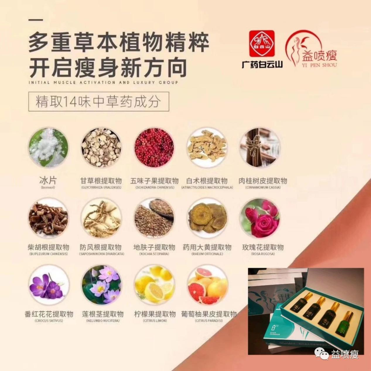 广药白云山益喷瘦是一款无需口服就可以轻松瘦身的神器,益喷瘦采用14位草本中药秘方精制发酵而成。益喷瘦采用非药物自然物理生态疗法,从中医益气健脾化痰着手,通过人体特定穴位调理机制。平横脏腑阴阳,修复经络疏通,平衡旺盛气血,提高基础代谢,从源头阻断两大肥胖元凶,将40%的淀粉和90%的脂肪代谢,更将体内多余水分代谢废物和毒素排出。