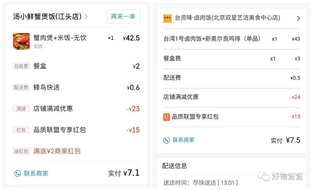 如果每天点外卖省个几块钱,一个月就是100多元!这100多元以前你是没有的,而你通过【好物查查】公众号跳转绑定了一下就有现金返利了。