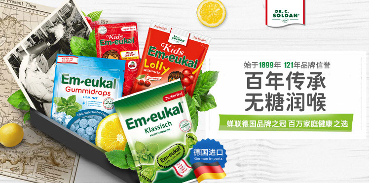 创立于1989年的索丹博士(DR.C.SOLDAN)被誉为德国百年天然润喉糖第一品牌,先后6次获得德国超级品牌大奖,并与BMW Mini,保时捷同获德国Marken-Award品牌大奖,德国止咳润喉糖销量第一的世纪国民品牌,是当之无愧的食品界“德国制造”象征。在登陆中国天猫国际之前,索丹博士凭借着独一无二的草本无糖配方,丰富多滋的口味,以及因爱而生的红白“温暖围脖”这一独特的品牌标识,在全世界35个国家和地区掀起了“护桑风暴”。