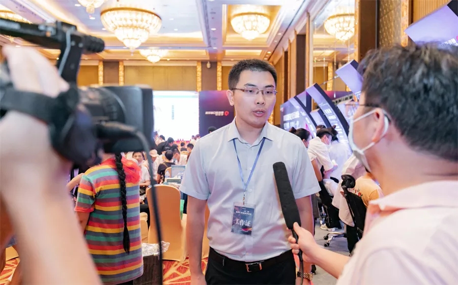 ▲福州广播电视台记者现场采访主办方负责人刘冰