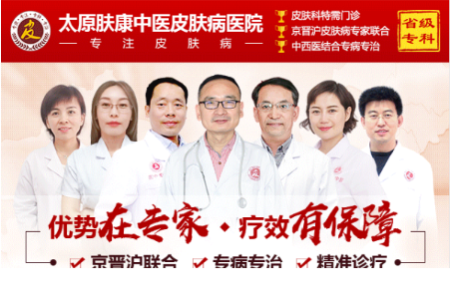 太原肤康皮肤病医院聚集了大批国家级、省级等造诣非凡医学医生坐诊与北上广多家名院实现医生资源共享合作,汇聚国内皮肤病学领域较顶尖的医生阵容,组建了一支医生型皮肤病医师团队(临床经验30年),并且成立了山西省首个“国家级皮肤医生会诊中心”,在国内皮肤病学术领域享有盛名,传承古老中医经典药方,创新融合国际标准化中医诊治流程,树立国内新型中医治疗皮肤病典范,具有秉承厚德载物,仁术济世的精神,医院严格执行世界卫生组织倡导的诊断和治疗标准,诊疗水平与国际医疗服务接轨。