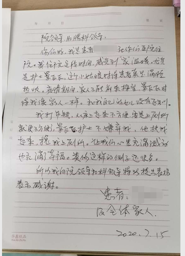 秉承着一颗“爱心、热心、细心、耐心、诚心和责任心”的服务精神,赢得的了患者的诚挚的感谢。一面面锦旗,一封封感谢信,表达着对我们护理工作的高度赞誉,虽然每天留下的是一身疲惫,换来的却是患者身心的安康。