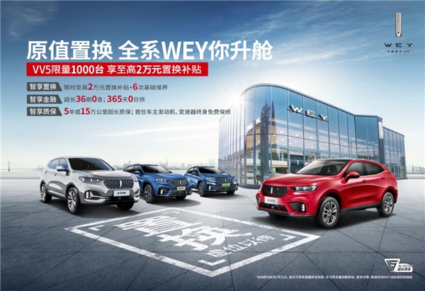 还有至高10万元限额贷、30期0息,或者至高8万元限额贷、36期0息的金融政策可叠加,相当于为我们准车主减免1.2万元的利息,有和我一样,职业是公务员的朋友,置换新车还有3000元专项基金相送。而我置换的这辆WEY VV5,根据各地情况不同,购车还有终端购车优惠,一般都在8000元左右。