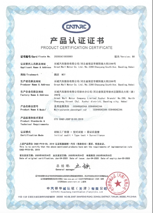 除了健康方面的认证,2021款VV6还关注到了当前智能汽车的安全新高地——信息安全。其通过了中国汽研设置的包括38项二级测试项目,174项三级测试项目的产品测试内容,以及覆盖风险评估、应急响应、防护方案验证、安全升级四个维度的信息安全保障水平测试,全方位防止我们的个人隐私泄露。
