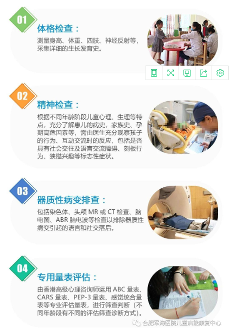 当孩子出现上述症状,一定要尽早带孩子进行专业、精确评估, 分型分诊,多维治疗,解决自闭症重治不重诊的弊端,为孩子后续康复做准备,避免耽误孩子黄金康复期。诊前评估要求父母(或者患儿的主要照护人)提供患儿的具体行为细节,需根据评定者所收集到的患儿行为信息进行评定,这也是影响诊断结果的重要因素。