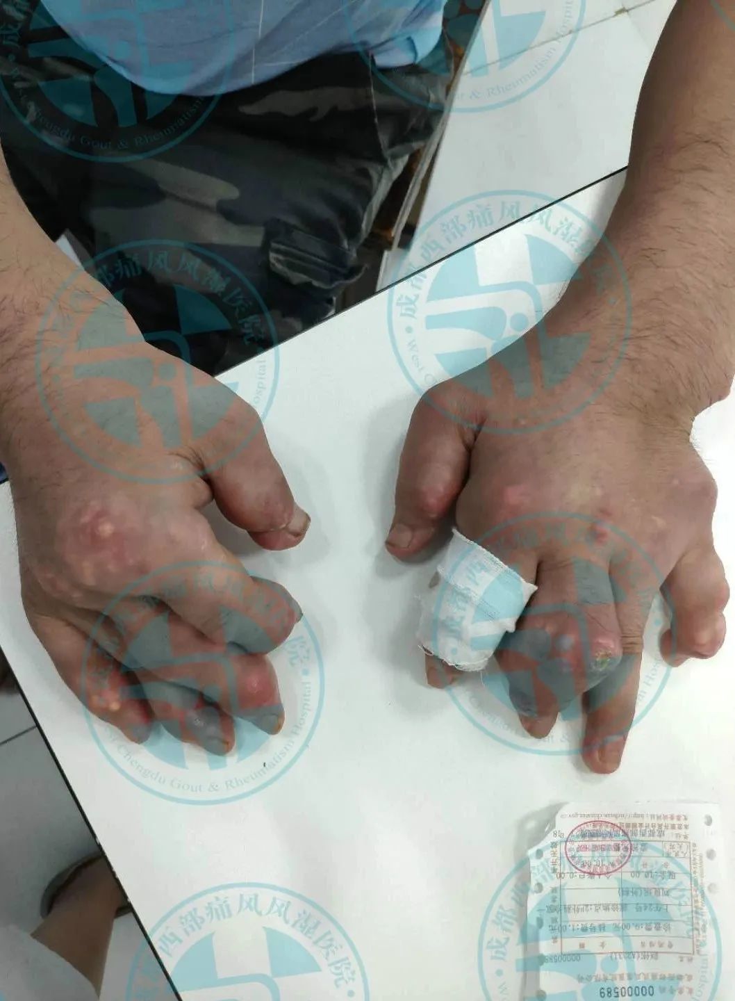 这名患者实际年龄才33岁,已经是有10年病史的老痛风了!
