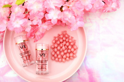 光滑透亮的玻璃包装,加上精致闪亮的烫金,简直是完成了全世界女孩子对美好事物的憧憬好吗!?樱花粉色的小小胶囊,包裹着金灿灿香喷喷的精华蜜……轻轻提着小仙胶的粉色尾巴剪开,一次一粒,均匀涂抹在面部按摩,让樱花小仙胶完全融入肌肤~想想就是个享受的过程呢!