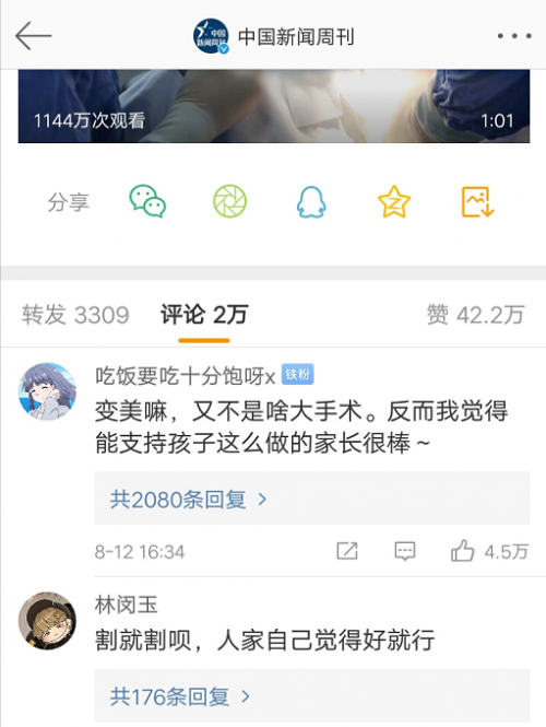 争论双眼皮好看还是单眼皮好看,本身没多大意义,就像网友说的那样:自己喜欢就好嘛。爱美之心人皆有之,想让自己变得更美,以一个新的形象进入大学有何不可呢?