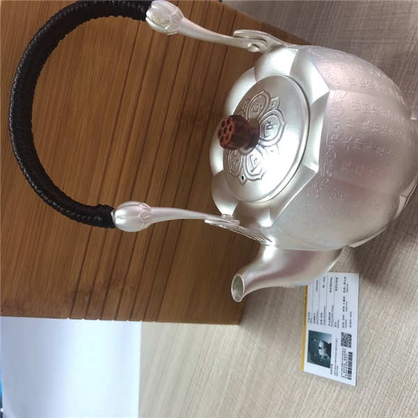 后来一次契机,大概是2020年中旬的时候,发现银的原材料价格大幅下降,平台内银商品对应的价格也大幅下降,一直在关注的一个银茶壶将近在两周内降了30%,因为这个茶壶的价格比较高,在犹豫了很久并且咨询了在线客服了解了之前考虑的产品认证以及售后问题后,最终下单了。商品全称是莲花心经壶,收到货前比较忐忑,打开快递包装的那一刻,从商品的外包装盒,到里面的里面内部包装,着实感受到商品的价值与商城的重视度。打开真空包装后,发现茶壶真的是无比精美,每一个细节都加工的十分到位,证书查验的确是正品。忍不住在家里泡茶用了起来,来家里喝茶的朋友问我茶壶哪里买的,计划下次再有产品降价的时候多买一个送礼给家里老人。