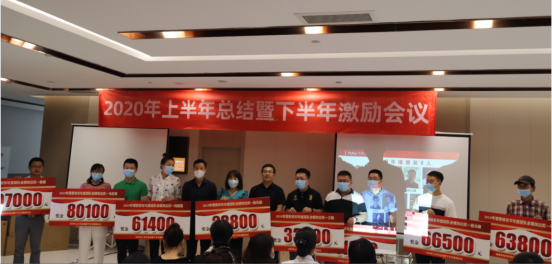 会议开始,程总代表集团董事长对普惠铁军全体致以诚挚问候,殷切期望,同时程总对上半年的业绩做了概要总结和分析,有可喜的成绩,也有对不足的反思,随后销售总监姚总的讲话,让铁军战士们更加有力信息,因为他给销售团队带来的是更加优厚的业绩奖励政策,讲话最后姚总为全体铁军鼓了士气:“大干100天,再干7000万”的连续吼声震彻回响,让现场气氛达到了高潮!