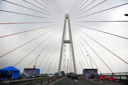 襄阳市鱼梁洲大桥改造工程,2015年 10 月份开始施工。鱼梁洲大桥于 1997 年 9 月建成通车,是鱼粱洲连接樊城的唯一通道,由于桥面太窄,只有双向2车道,每逢上下班高峰时段,桥面交通经常堵塞。此次鱼梁洲大桥改造,大桥主体结构不变,只对主梁及盖梁、部分墩柱及桩基进行加固,主要病害是有严重的空心裂缝,涉及产品为预应力碳纤维板加固系统。