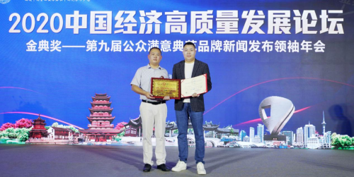 2020年8月26日,由中国商报社、中国商界杂志社、中国信息界杂志社、中国流通行业管理政研会信用管理专委会、中国管理科学研究院商业模式研究所、中国合作贸易企业协会电子商务分会、江苏掌心企业管理咨询集团等媒体机构联合主办的“2020中国经济高质量发展论坛暨金典奖第九届公众满意典范品牌新闻发布领袖年会”在苏州金鸡湖凯宾斯基大酒店举办。