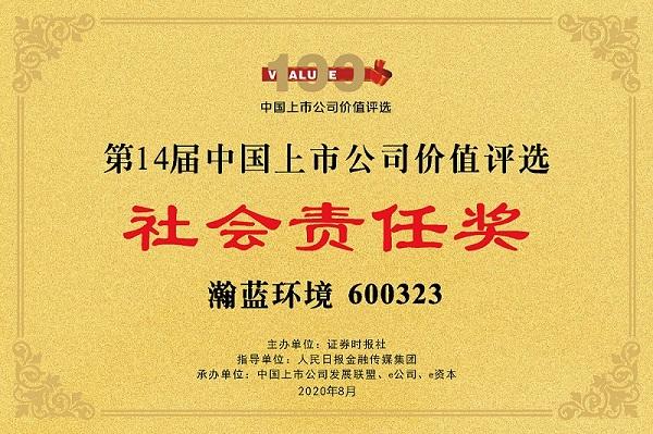 8月28日,由人民日报金融传媒集团指导、证券时报社主办的“第14届中国上市公司价值评选”榜单公布,瀚蓝与中国石化、工商银行、广汽集团、美的集团、中兴通讯、立讯精密等国内各行业头部企业并列获得了“中国上市公司社会责任奖”。