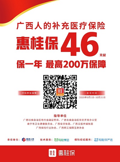 9月1日,由国内领军健康保障平台轻松集团联合全国性寿险公司国富人寿共同打造的“惠桂保”,在广西南宁隆重发布。广西壮族自治区地方金融监督管理局、广西壮族自治区扶贫开发办公室、南宁市卫生健康委员会、广西投资集团、广西日报传媒集团、等7家指导单位领导,数十家合作伙伴,国富人寿、轻松集团员工代表,以及逾百家媒体到场,共同见证了我国首款省级普惠补充医疗保险——“惠桂保”上线的重大时刻。同时,“惠桂保”也得到了仁和集团、励步英语、八爪鱼国际、酒仙网、倍轻松、企鹅杏仁等各界企业作为公益合作伙伴的鼎力支持。