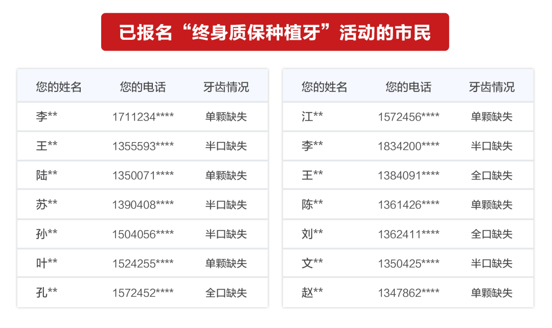 无论是单颗缺牙、多颗缺牙、半口/全口缺牙,活动假牙不适者,都可免费预约,享受种植牙“五免专项政策”——