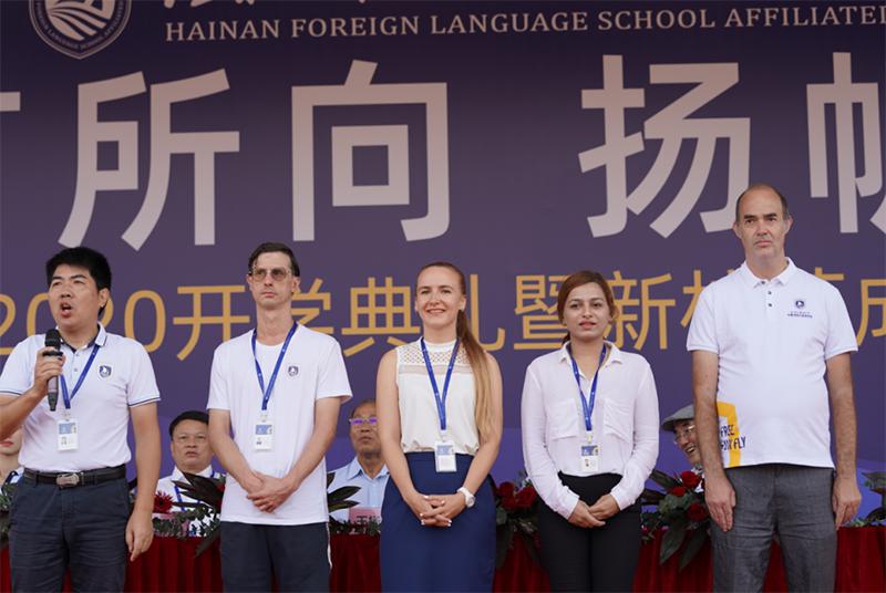 北京外国语大学附属海南外国语学校的开学典礼上,有一组特别惹人注目的群体,那就是学校的外籍教师。他们眼神和蔼而坚定,对海南的美丽风光与新学校的校园建设赞不绝口。他们的集体亮相成为开学典礼上一道靓丽的风景线。我们相信,有他们的加入,孩子们不仅不用发愁外语的学习,更可以深入地感悟多元文化魅力。