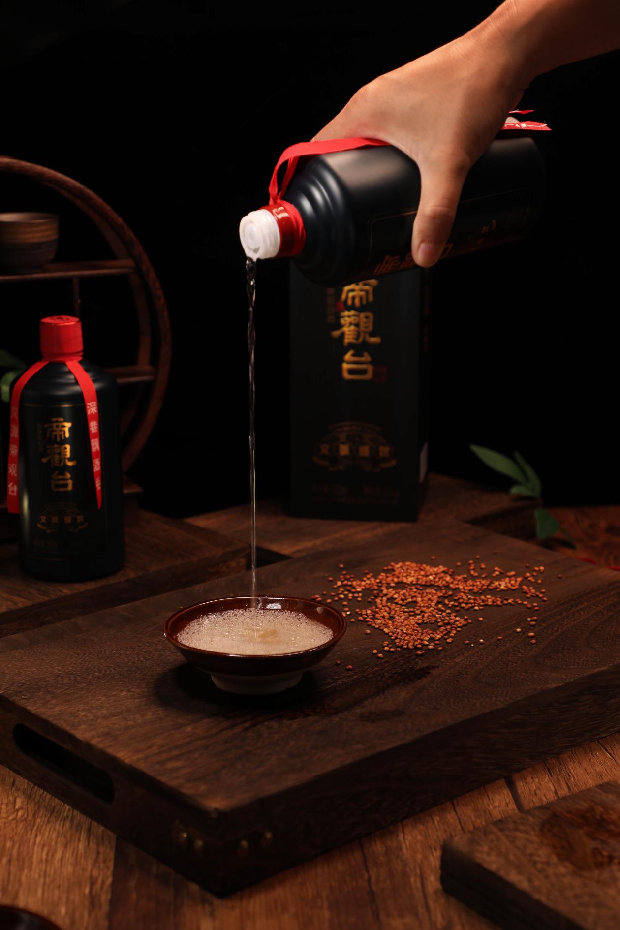 帝观台酱香型白酒选用当地优质高梁为原料,严格按照节气,端午采曲、重阳投料,基酒生产周期长达一年,共分清蒸下沙、混蒸糙沙共二次投料,一至七个烤酒轮次,概括为二次投料、九次蒸煮、八次发酵、七次取酒,历经春、夏、秋、冬一年时间,经历四百多年的不断尝试与改良,酿造技艺不断升级的同时也体会到古人的聪明睿智。