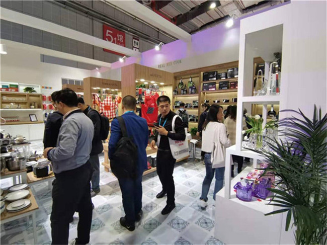 在展位中,Amercook的阿尔菲塔产品吸引了许多客商的注意,良好的握持手感及特别的配色,惹得众多客商不住上手把玩,甚至还拿手颠了好几下,不住的说,不错。得利于完善的产品线和诚恳的服务态度,许多客商与Amercook达成了合作意向。