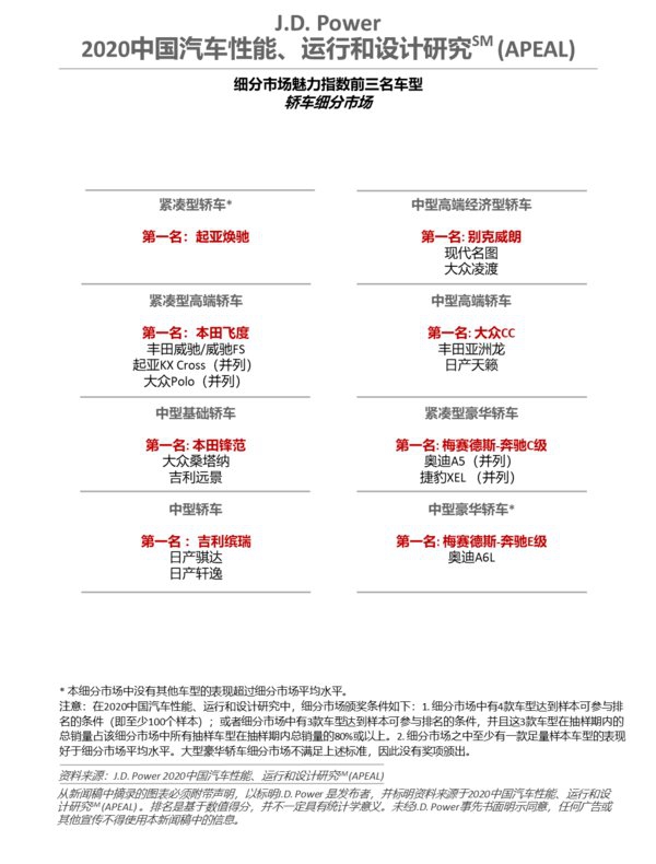 了解J.D. Power 2020中国汽车性能、运行和设计研究(APEAL)详细内容及购买完整版数据,请联系:china.marketing@jdpa.com