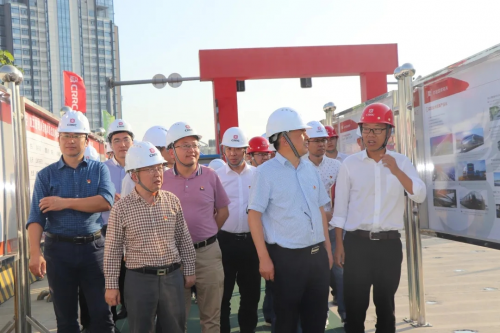 随后,在七工区项目部人员的带领下,大家共同前往七工区商海北街~腾达路站明挖二期工地,观摩了盾构施工现场,学习交流七工区在盾构施工中的先进做法。