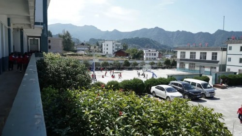日出东方公益慈善委员会主席吴典华、四季沐歌集团品牌总监李文平等与马寨小学校领导进行项目沟通