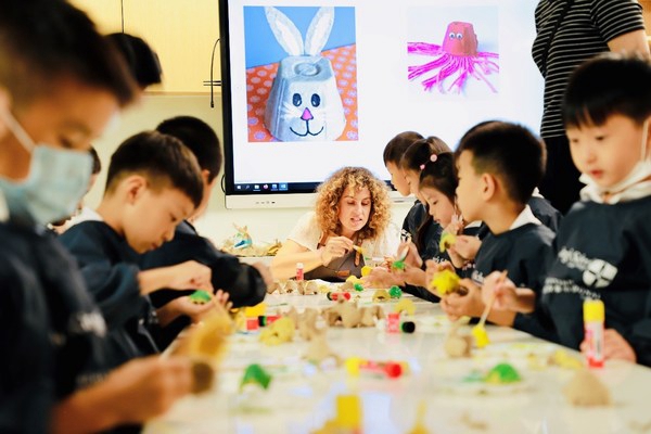 孩子们在艺术课上表现出了格外浓厚的兴趣。“每个小朋友都很有想法,清楚地知道自己想做的是什么,甚至知道自己要怎么做,还会主动与我互动。”Maria老师满意地表示。